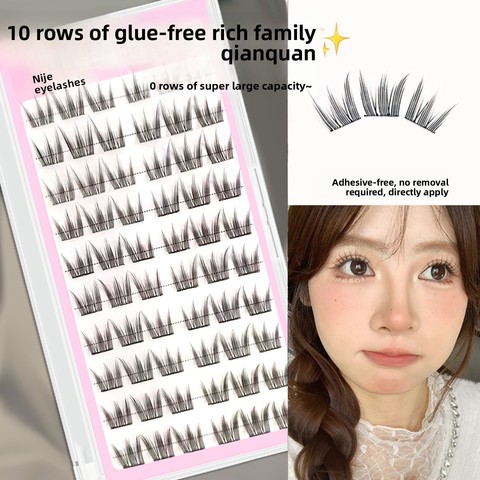 Pestañas postizas de estilo coreano para chicas ricas, sin pegamento, autoadhesivo, rizador natural, segmentado, perezoso, de tres pasos